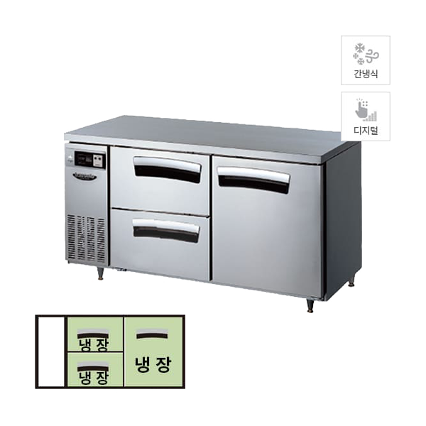 [라셀르] 간냉식 우유서랍 1500 테이블 냉장고 402L (올스텐)