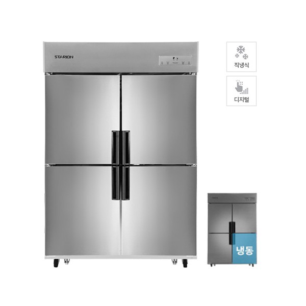 [스타리온] 직냉식 1/2수평 상냉동 스탠드 냉장고 1100L급 (올메탈)